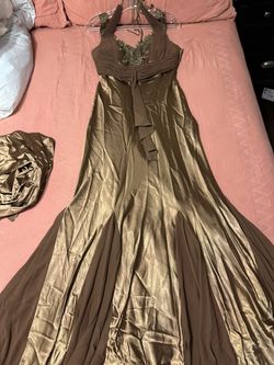 Long Brown Satin And Chiffon Dress Size Small$50Compton, CA