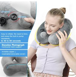 Self-Inflatable Neck Travel Pillow with Compact Bag and Washable Cover for Sleeping Airplane Soft Velvet Pillow for Long Flight Neck Cushion for Head $5Katy, TX