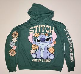 Disney Stitch lightweight hoodie women's size Large "One of a kind" "It's a state of mind" green$7Davis, CA