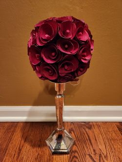 Wedding Pomander Bouquet/Topiary ~ 7" Wide Ruby Red Rose Wood Curl Floral Kissing Ball$15Overland Park, KS