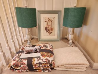 F/Q Quilt Blanket Bedding+Lamp/Lamps (2) for a Nightstand/Night Stand/End Table/Desk+Frame Wall Art Work Decor$60Overland Park, KS