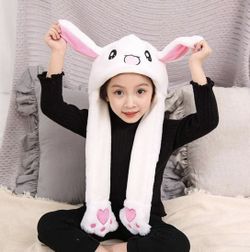 Women Girl Kid Fashion Moving Hat Rabbit Ears Plush Sweet Cute Animal Airbag Cap Winter Warm Bunny Cap Earflap Beanie Fluff Costume Hood Toy Xmas Gift$7San Diego, CA
