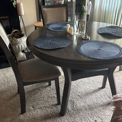 Gray wood dining table and chairs/Blue leather sectional/ glass coffee table still available as of 10/8/2025$250Indian Head, Maryland
