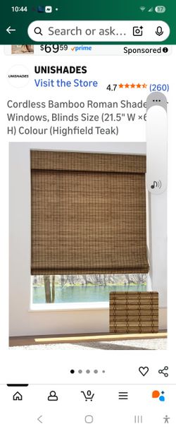 Cordless Bamboo Roman Shades for Windows, Blinds Size (21.5" W ×64" H) Colour (Highfield Teak)$25Riverdale, GA