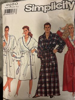 Vintage Simplicity 9950 Robe His or Hers Pattern Pre Owned XS-XL$16Temple City, CA