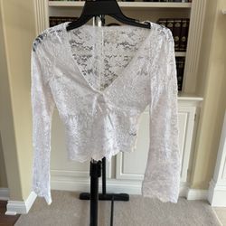 SHEIN Ruffle Trim Bell Sleeve Tie Front Lace Crop Top$5Fort Wayne, IN