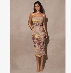 Silquee Green Elegant Big Floral Romantic Print Dress, Elastic Mermaid Hem Ruched Bodycon Mesh Dress$16Fort Wayne, IN