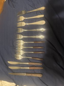Interpur Florenz 9 Petal Stainless Korea Floral 9 Forks 3 Knives Wooden Handle$20Princeton, FL