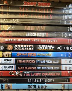12 NEW IN PACKAGE DVDs ZOOT SUIT, My Family, Lean On Me, American Me, American History X, Gabriel Iglesias, George López,Blvd Nights, Tortilla Soup$60Whittier, CA