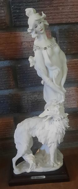 G. Armani White Figurine Signed - Girl W/Greyhound $25Oak Glen, CA