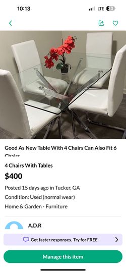 Good As New 4 Chair Dining Table $300Decatur, GA