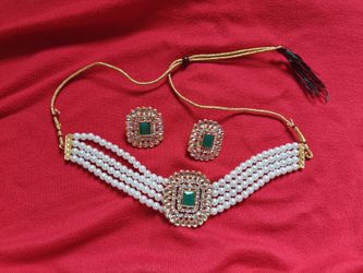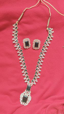 Emerald Silver Long Neck Piece With Earrings $20Danbury, CT