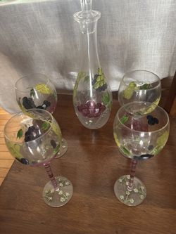 Hand-painted grape-themed glass wine decanter and 4 glasses$20Lemont, IL
