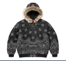 Supreme Bandana Jacquard Denim Hooded Work Jacket Black Size M$600Monterey Park, CA