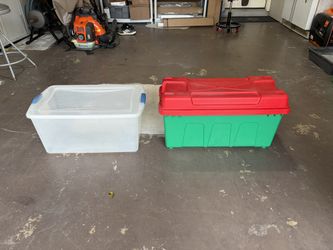 Set of 2 Plastic Storage Bins (Green One-Heavy Duty 23 Gal Footlocker Style w/Lid; Clear One-Sterilize 64 Qt w/Latch Lid$15San Antonio, TX