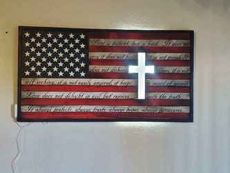 Wooden American Flag With Cross With Light $300Arizona City, AZ