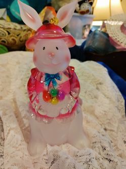Easter Bunny Rabbit Holding Basket of Eggs Acrylic Frosted Figurine 9 1/2 inches$23Portland, OR