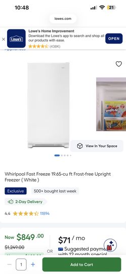 Whirlpool Freezer With Temperature Adjustment$250Santa Ana, CA