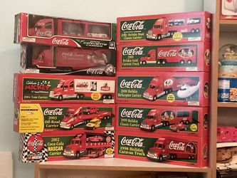 Cola Cola 1998 to 2006 Coke Semi Truck Carriers: COMPLETE SET OF 10 SPEEDWAY SANTA HOLIDAY TRUCKS$249Holiday, FL