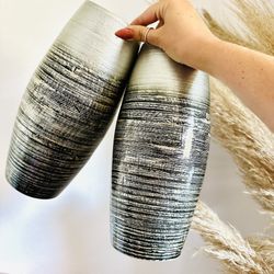 2 Silver Grey Gray Black Floral Flower Tall Vase Kitchen Gadget Storage Display$35Lemon Grove, CA