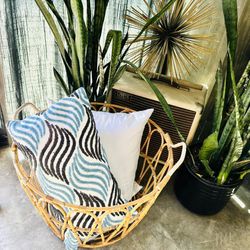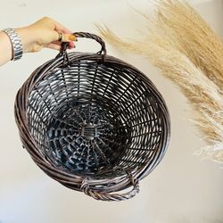 VINTAGE Brown Wood Wicker Woven Low Basket Accent Decor Vase Handles Y2K 90s$30Lemon Grove, CA