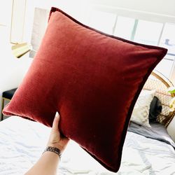 POTTERY BARN Rust Red Burnt Orange Velvet Pillow Case Sham 20" Square Set 2$100Lemon Grove, CA