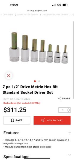 Snapon 1/2 Drive Hex Sockets Metric $80Beaumont, CA