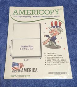 Americopy 200 Shipping Labels Half Sheet Print 5-1/2" x 8-1/2" Laser, Copier$10Mountain View, CA