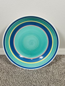 Himark Italy 13" Ceramic Bowl Dinner Plate Blue Turquoise Rings Rim Stoneware Ceramic Hand Painted$30Marysville, WA