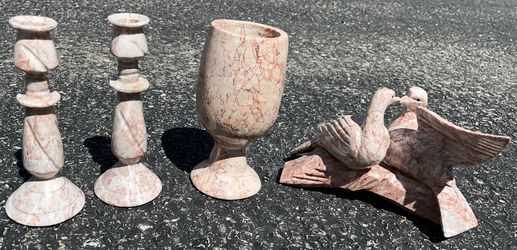 Vintage Pink Gray Onyx Marble Stone Carved Candle Stick 7.75” Set of 2$20Monticello, IN