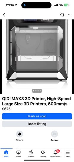 QIDI MAX3 3D Printer, High-Speed Large Size 3D Printers, 600mm/s Fast Print, Fully Auto Leveling, 65$675Fort Pierce, FL