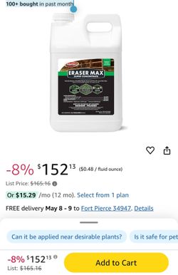 CONTROL SOLUTIONS (contact info removed)0 2.5 Gallon Eraser Grass Super Concentrate Weed Killers 100+ bought in past month$60Fort Pierce, FL
