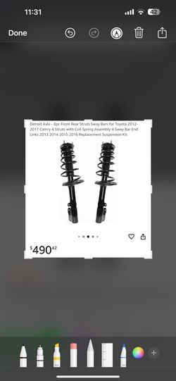 Detroit Axle - 8pc Front Rear Struts Sway Bars for Toyota 2012-2017 Camry 4 Struts with Coil Spring Assembly 4 Sway Bar End Links 2013 2014 2015 2016 $150Fort Pierce, FL