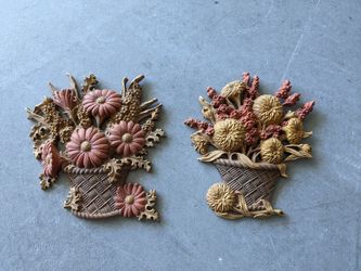 Set of (2) Vintage Burwood Products Brown Flower Baskets Wall Decor #2066