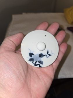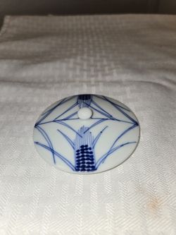 Japanese porcelain Replacement lid, blue and white color.. Measurement 2 1/2" round diameter, 1" tall. No chips or Cracks. Very good condition.$3Rancho Mirage, CA
