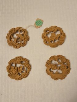 Chinese Carved Wood Pendant Asian Design of flowers. Measurement: 2 1/2" round. Natural color wood. $20Rancho Mirage, CA