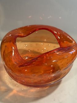 Vintage MCM Controlled Bubble Art Glass Bowl Ashtray Dish Orange $30Tacoma, WA