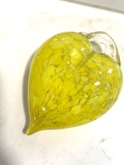 Hand Blown Yellow Heart Art Glass Hanging Ornaments Sun Catcher Approx 5” x 3.75” x 2” thick Has a few colored flecks and a few bubbles $22Tacoma, WA