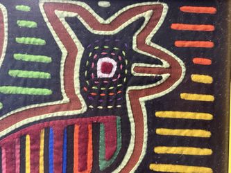 SoldVintage Panama Kuna Mola Animal Folk Art Reverse Applique Embroidery Textile Art Framed 9” x 10.5” Some fog on the glass in one spot - see pics circ$30Tacoma, WA