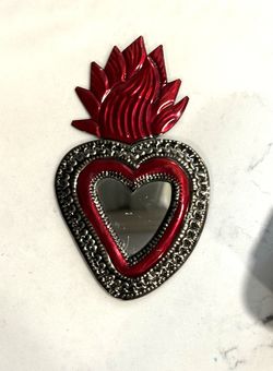 Hand Painted Sacred Heart Tin Mirror - approx 6” tall x 4” wide This is a hand-painted Mexican tin sacred heart mirror, a traditional piece of folk $13Tacoma, WA