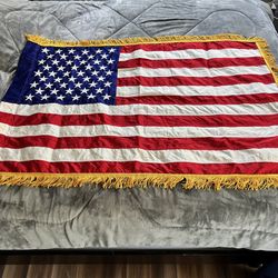 2007 Embroidered U.S. MADE American Flag W/ Gold Fringe 3x4.5 Feet By Valley Forge $40Glendale, CA