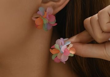 Bohemian style summer floral heart-shaped pendant earrings - colorful acrylic petals, randomly mixed colors, Stainless Steel earrings, suitable for ca$5West Palm Beach, FL