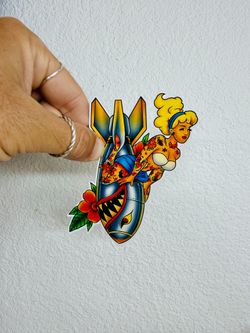 Traditional Tattoo Pin Up Bomb Girl Sticker Motorcycle Aviation Bomber Decal$4West Los Angeles, CA