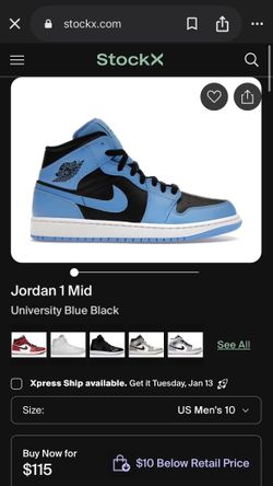 Jordan 1 Mid University Blue Size 10 Like New$67Allentown, PA