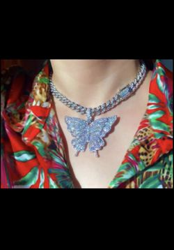 14k White Gold Filled Butterfly 🦋 Pendant And Cuban $260Brooks, GA