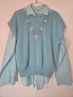 Vintage Womens long sleeve button down shirt with matching knit vest. Size XL$35El Mirage, AZ