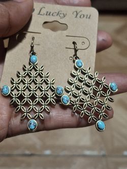 Blue & Gold Dangling Earrings $6Hastings Hdsn, NY
