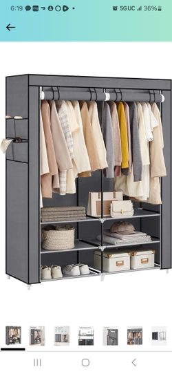 SONGMICS Portable Closet Wardrobe with Shoe Rack and Cover, Closet Storage Organizer, 2 Hanging Rods, Shelves, and 4 Side Pockets, 50 x 17.7 x 69.3 In$50Adelphi, MD