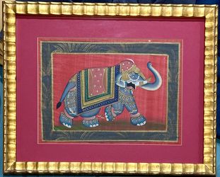 Vintage Hand Painted Indian Elephant on Red Silk, Prof. Framed w/Burgundy Mat$60Oakland Park, FL