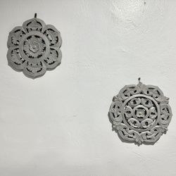 Rustic Carved 9” Round Wood Wall Decoration Set, Grey, Floral Themed, MDF New$15Oakland Park, FL
